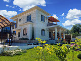 Что касается самого дома, его общая площадь составляет 180 квадратных метров. Планировка включает в себя просторную кухню-гостиную, 2 ванные комнаты, 5 спален и вместительную гардеробную. К дому подведены и подключены все необходимые коммуникации. В комнатах сделан качественный ремонт, установлена мебель и бытовая техника. Из гостиной открывается выход на просторную террасу с мягкой мебелью, предназначенную для отдыха на открытом воздухе. На прилегающей территории обустроена зона для барбекю, парковка с навесом и выполнено декоративное озеленение.