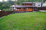 Участок под домом – 6 соток. Выполнено благоустройство и ландшафтный дизайн. Также установлен небольшой игровой комплекс для детей – с качелями и лесенками. Грамотное зонирование территории позволяет оборудовать здесь дополнительные зоны для отдыха – бассейн, барбекю, летнюю кухню.