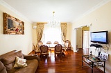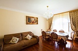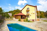 Площадь самого дома составляет ровно 400 "квадратов". На первом уровне - помещения общего предназначения: просторная большая кухня, гостиная комната, и две спальни для гостей. На втором и третьем уровнях расположено по четыре спальни, каждая с отдельным балконом. Как уже говорилось выше, дом полностью готов для Вашего проживания: сделан высококлассный евроремонт, все комнаты полностью укомплектованы и мебелью, и техникой.