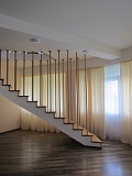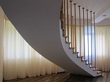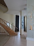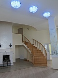 Строение из 3 этажей общей площадью 560 / 425 м2 выполнено по индивидуальному проекту. Лестничный пролет находится в центре здания и имеет форму спирали, в центре которой расположен каминный зал.