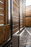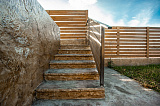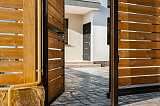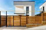 Земельный участок огорожен из натурального дерева высоким забором с автоматическими воротами на въезде.