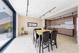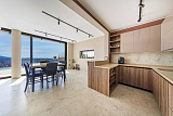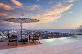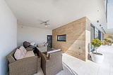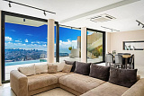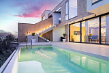 - Широкая гостиная, совмещенная с кухней, с панорамным остеклением из алюминия и стекла, обеспечивающим прямой доступ к собственному бассейну и возможность наслаждаться неповторимыми пейзажами: морской гладью, буйной растительностью, горами и огнями курортного центра.