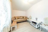 Вашему вниманию представлен коттедж в стиле "шале". Дом полностью готов к проживанию. Планировка включает в себя 2 спальни, 2 с/у, большую кухню, гостиную, каминный зал,сауна, летняя кухня, гараж на первом этаже.