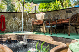 Прекрасный сад во дворе, растут плодовые деревья, есть небольшой пруд, зона отдыха.