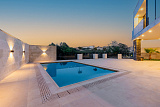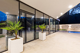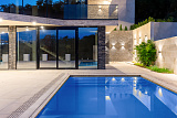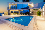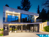Дом оснащен элементами умного дома, что позволяет удаленно управлять освещением, а также имеет закрытую территорию поселка с шлагбаумом и крытым паркингом на 2 автомобиля. В дополнение к этому, здесь есть бассейн размером 8х6 метров с системой противотока, подогревом и переливом, а также благоустроенный двор, выложенный из испанской плитки MAYOR Ceramica.
