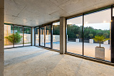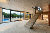 Фасад дома отделан природным камнем - иранским травертином и мрамором, а панорамные окна из алюминиевого профиля сочетаются с энергосберегающими стеклопакетами. Каркас здания монолитный, а стены заполнены керамическими блоками "POROMAX". Высота потолков составляет 3,2 метра.