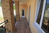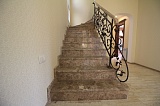Архитектура самого дома гармонично вписывается в общий ансамбль района. Строгая и сдержанная геометрия фасадных линий здесь очень изысканно разбавлена декоративными элементами – арочным дверным проемом, просторными террасами с коваными оградами и колоннами, отделанными камнем.