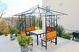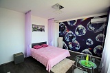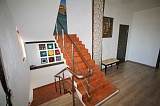 Общая площадь дома равна 350 квадратным метрам. Четыре этажа. На первом уровне расположены помещения, предназначенные для хозяйственных целей - подсобки, кладовки, котельная комната, построчная и инфракрасная сауна. На втором - холл, кухня-гостиная, гардеробная и каминный зал. Третий этаж занимают спальни. Четвертый этаж - мансарда, площадью 45 м2. При желании здесь можно оборудовать большой рабочий кабинет с библиотекой или же сделать пару-тройку дополнительных спальных комнат. Внутри дома менее одного года назад был сделан абсолютно новый ремонт. Все комнаты полностью меблированы и оснащены современной бытовой техникой, которая практически никогда не эксплуатировалась. Классический дизайн интерьера.