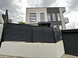Участок – 4 сотки. Есть два парковочных места для автомобилей. Выполнены работы по монтажу систем дождевого водоотведения. По периметру – подпорные стены.