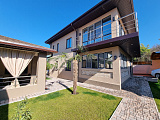 В качестве отдельного преимущества можно выделить идеально ровный рельеф земельного участка, что для Сочи является большой редкостью. Здесь расположен навес для нескольких автомобилей. Есть возможность поставить беседку или игровой комплекс для детей. Выполнен очень красивый ландшафтный дизайн, который ненавязчиво подчеркивает эстетику дома.