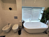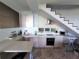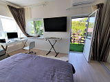 Поднимитесь на вершины дома и через величественные панорамные окна откройте перед собой завораживающий панорамный вид на горы и голубеющую морскую гладь. Первый этаж радует нас просторной современной кухней гостиной, на втором этаже вы обнаружите две уютные спальни и блестящую ванную комнату. Неподражаемая мастер-спальня находится на третьем этаже, где благодаря завораживающему виду ваше каждое утро будет похоже на сказку. Таким образом. домовладение предлагает прекрасные условия для комфортного размещения целой семьи или шумной компании добрых друзей.
