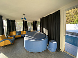 Площадь гостевого дома также составляет 200 м2. Здесь находится две спальни с отдельным входом, бассейн, сауна, купель, джакузи, кинотеатр, спортзал и бильярдная комната.