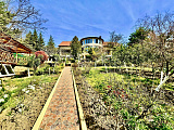 Площадь участка – более 15 соток. Руками профессионалов выполнено очень красивое ландшафтное озеленение территории. Уникальная особенность – наличие собственной пасеки. Есть бассейн, баня, летняя кухня и большой плодоносящий сад.