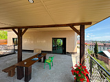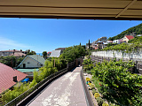 На участке выполнен ландшафтный дизайн, который весьма гармонично дополняет общий стиль архитектурного решения. Высажены южные субтропические деревья и кустарники. Кстати, за счет расположения на возвышенности, вид отсюда открывается просто восхитительный! При этом вы можете быть уверенными в том, что он в перспективе никем не будет перекрыт.