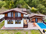 Общая площадь представленного вашему вниманию дома составляет 109 квадратных метров, а расположен он на участке, площадью 3,5 сотки. Архитектурное решение в стиле шале идеально увязано с естественным природным ландшафтом. Дом расположен на участке таким образом, что из окон всех его комнат открываются прекрасные виды на горную панораму.