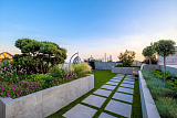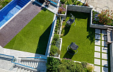 Участок в 9 соток украшен ландшафтным озеленением с использованием редких тропических растений, установлена автоматическая система полива. На территории обустроен круглогодичный бассейн с фильтрацией, зона для барбекю.