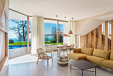 Общая площадь виллы – 460 квадратных метров. На первом этаже – просторная гостиная, кухня и вместительная гардеробная. На втором – три изолированных спальни. Третий этаж отведен под зону отдыха. Внутри выполнен изысканный ремонт, который подчеркивает эксклюзивность виллы и безупречный вкус ее владельцев.