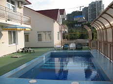 Площадь участка – 6 соток. Здесь созданы все условия для вашего комфортного отдыха в кругу близких людей. Есть открытый бассейн с зонами для принятия солнечных ванн. Также у собственников есть возможность оборудовать тут дополнительные места для отдыха – установить игровую площадку, мангальную зону и многое другое.