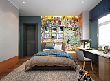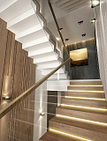 Внутри выделено две изолированные спальные комнаты, просторная кухня, совмещенная вместе с гостиной, а также отдельный рабочий кабинет. На каждом из этажей – санузлы.