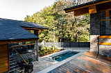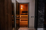 Второй этаж: три спальни, ванная комната, просторная гардеробная. Гостевой домик площадью 125 кв.м. состоит из кухни-гостиной, санузла и русской бани, отапливаемой дровами, также с дизайнерским оформлением.