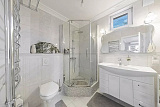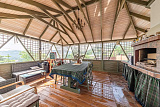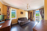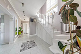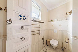 Внутренний вид дополнен уникальной мебелью, выполненной по индивидуальным проектам. Система отопления включает теплые полы, радиаторы и кондиционеры, что гарантирует идеальный микроклимат. Ухоженный участок площадью 7 соток удачно объединяет практичность и красоту: здесь есть деревянный павильон-кухня для летних обедов, места для парковки двух автомобилей и декоративные элементы ландшафта.