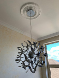 Кухонный гарнитур и встроенная техника Smeg остаются в доме. Вся мебель от Prama также передается новому владельцу. Светильники из чешского хрусталя, а на лестнице и балконах установлены люстры и бра итальянского производства. Полы выложены керамогранитом, а в ванных комнатах используется испанская плитка. Ванна изготовлена из литьевого мрамора, привезенного из Швеции. Окна выполнены из алюминиевого профиля, а двери — из массива дерева.