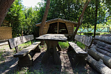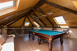 Гостевой дом включает в себя бильярдную, русскую парную на дровах, два санузла, ванную и домашний кинотеатр. Рядом с баней расположена купель.