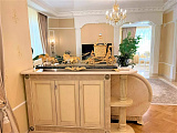 Использованные в отделке материалы отличаются высокой стоимостью и безупречным качеством. Мебель, изготовленная на заказ итальянскими мебельными фабриками, выполнена из редких пород дерева!