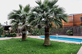 Скрытый от посторонних глаз за КПП в самом центре Сочи раскинулся великолепный дом – настоящая архитектурная жемчужина общей площадью 350 квадратных метров. Это трехэтажная резиденция с эксплуатируемой кровлей, расположенная на участке земли в 12 соток, где среди пышного сада с мандаринами, кумкватами и фейхоа возвышаются стройные пальмы, дарящие ощущение круглогодичного тепла.
