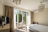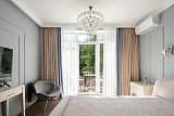 Без преувеличения! Уникальное предложение на рынке г. Сочи. К продаже предлагается вилла в санатории Зеленая Роща, в прямом соседстве с дачей Сталина. Домовладение находится в окружении дубовой рощи и абсолютно приватна. От дома идут терренкуры на самые живописные места в Хостинском районе. Орлиные скалы, агурские водопады в пешей доступности. К пляжу ходит лифт. Внутри санатория жителям доступны спортивная и оздоровительная инфраструктура санатория Рос Тех. Сама вилла выполнена в классическом стиле и отделана натуральным камнем. Во дворе гараж на два автомобиля, мангальная зона и с террасой и летняя кухня. Так же в доме есть банный комплекс с уличной гидромассажной ванной. Внутри выполнен ремонт в стиле современная классика. Материалы и мебель премиального уровня. Планировочные решения предусматривают на первом этаже кухню-гостиную, спальню, санузел, хозяйственный блок, баню. Второй этаж - три спальни, кабинет, два санузла. Мансарда отремонтирована под площадь свободного назначения. Что очень важно для того места дом имеет жилой статус, земля в собственности ИЖС.
