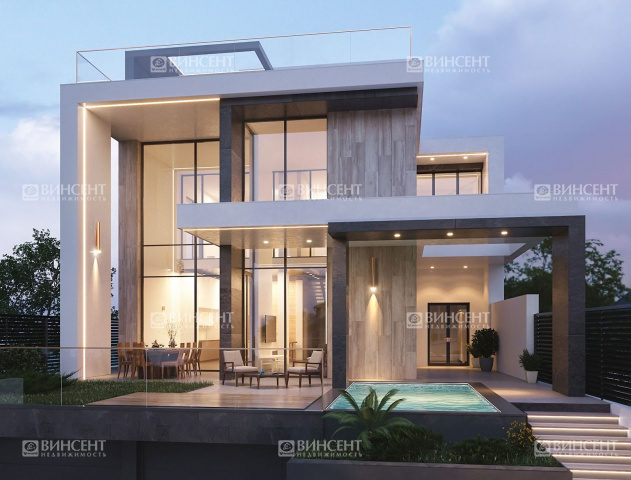 вниманию современный коттедж с открытыми террасами, панорамными видами на море и горы, бассейном и терри... Подробнее