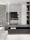 Второй этаж – это жилое пространство: мастер спальня, детская и гостевая спальни. Ванная комната с шикарным мини-бассейном. На стенах керамогранит от Porcelanosa, испанская сантехника премиального класса.