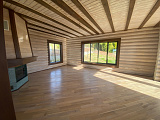 Внутри дома практически все готово для жизни. Покупателям остается только выбрать мебель и технику по своему усмотрению. В оформлении пространства преобладает дерево, которое придает атмосфере особую уют и очарование.
