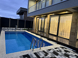 Одной из изюминок данного дома является подогреваемый бассейн, который позволяет наслаждаться водными процедурами в любое время года, независимо от погодных условий. Это прекрасное место для проведения вечеринок, семейных встреч или спокойных вечеров у воды. Бассейн окружен уютной зоной для отдыха, где можно разместить шезлонги и зонтики, создавая идеальную атмосферу для релаксации.