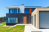 Архитектурная концепция просто идеальнейшим образом увязана с общей стилистикой застройки данного коттеджного посёлка. Прекрасным дополнением служит красивый ландшафтный дизайн прилегающей к коттеджу территории.