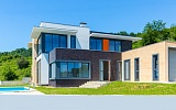 Участок, на котором расположен дом – 14 соток. Есть отдельный гараж для автомобилей, большой инфинити-бассейн, зона для барбекю.
