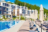 Путь до моря пешком занимает около пятнадцати минут, однако, Вы можете воспользоваться специально организованным трансфером и существенно сократить время в пути. Пляж комплекса также оборудован всем необходимым для отдыха – шезлонгами, зонтиками, уборными. Очень красивая и благоустроенная набережная!