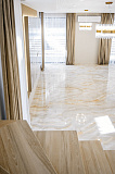Общая площадь дома – 150 квадратных метров. До мелочей продуманное планировочное решение и стильный дизайнерский ремонт – самые очевидные плюсы. Пространство внутри поделено на 4 изолированных спальных комнаты, кухню, совмещенную с гостиной зоной, 3 санузла. Основа интерьера – элегантная современная классика. Выполнена частичная меблировка, установлено климатическое и сантехническое оборудование.