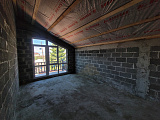 Общая площадь дома – 200 м2. Отсутствие финишной отделки внутри позволяет покупателям персонализировать пространство наиболее удобным для себя образом. Кроме того, можно лично продумать стилистику оформления интерьера. Высокие потолки и большие окна создают ощущение простора и свободы. Коммуникации заведены в дом, выполнена частичная разводка.