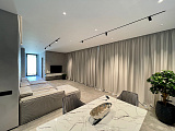 - Дизайнерский ремонт, премиальные материалы отделки, встроенная и мягкая мебель изготовлена на заказ, бытовая техника премиальных брендов, текстиль и предметы интерьера.