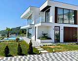 Представляю Вашему вниманию современный коттедж с открытыми террасами, панорамными видами на морской пейзаж, бассейном, зоной барбекю и ландшафтным озеленением. Коттедж входит в состав комплекса из девяти современных домов бизнес-класса в стиле Hi-Tech. Но это не просто застройка, здесь найден идеальный компромисс естества и адаптации. С одной стороны - уют и безмятежность нетронутого природного ландшафта, с другой - динамика и комфорт современной жизни.