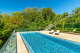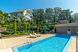 На территории есть собственный бассейн, отдельный домик для гостей, три гаража и баня на дровах. Двор буквально утопает в субтропической зелени – пальмах, олеандрах, лианах киви, винограда, южных фруктовых деревьев. К слову, ландшафтный дизайн отлично подчеркивает эстетичное архитектурное решение самого дома!