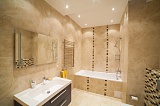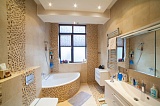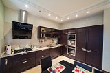 Данный таунхаус также как нельзя лучше подойдет для проживания большой семьи с маленькими детьми. Площадь его составляет 270 «квадратов», 3 этажа. Большая кухня, объединенная со столовой зоной , 4 спальни с открытыми балконами, две ванные отдельная гардеробная и детская комнаты. Вся мебель в доме привезена на заказ из Италии. Очень красивая лестница с фигурными периллами ручной работы. Немецкая сантехника. Очень стильный и современный интерьер.