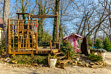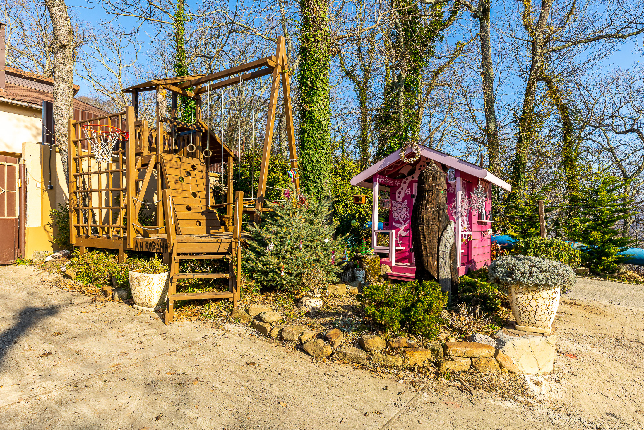 На придомовой территории таунхауса благоустроены зоны для отдыха. Также предусмотрено парковочное пространство для автомобилей с навесом. Есть игровой городок для детей.