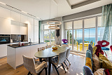 Сочетание внушительной площади с детально продуманным планировочным решением делает это предложение действительно идеальным вариантом для жизни и отдыха больших семей, ценящих свободу личного пространства. Кстати, все спальные комнаты тут двухуровневые – это только подчеркивает уникальность объекта. Очень просторная гостиная, объединенная с кухонной зоной. Из окон всех комнат открывается прямой вид на морскую акваторию.