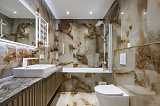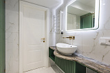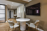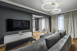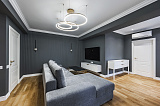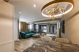 Внутренняя отделка – дорогостоящий дизайнерский ремонт, который отличается не только визуальной эстетикой, но и действительно высоким качеством своего исполнения. В комнатах установлена абсолютно новая мебель и техника, кондиционеры. Основа оформления интерьера – роскошная современная классика в самой лучшей ее интерпретации.