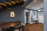 Самая главная особенность –уникальное планировочное решение. Пространство здесь распланировано на три полноценных квартиры с отдельным входом на каждом из этажей. На третьем этаже – трехуровневая квартира с огромной террасой на свежем воздухе. Это на самом деле идеальное предложение для ценителей свободы личного пространства. Впрочем, обязательно стоит побывать здесь лично, чтобы оценить все плюсы.