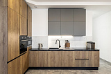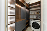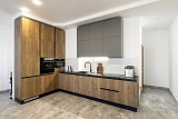 Первый уровень включает просторную кухню-гостиную, входную группу, ванную комнату и одну жилую комнату. Второй этаж – это комфортабельная главная спальня с собственной ванной и вместительной гардеробной.