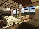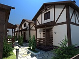 Планировочное решение внутри домов продумано и исполнено самым выгодным образом. Каждый коттедж насчитывает две спальни, большой балкон, кухню, совмещенную с гостиной комнатой, просторную террасу и прихожую с санузлом.