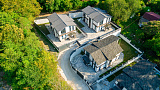 На территории расположилось 5 коттеджей, со своей частной территорией, которая оформляется в собственность, как и сам дом, общая проезжая часть и выход в на национальный парк.